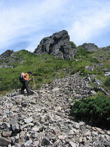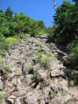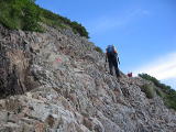 急坂のザレ石を登って