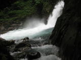 斜面を下って滝つぼ付近まで行きます。飛沫が気持ちいいです。 ついでにマイナスイオンをたっぷり浴びてお肌のケアーをしたりして(^_^;