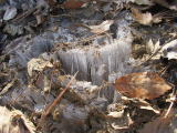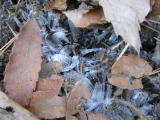 落ち葉の影に霜柱が |