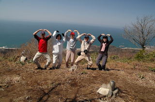 | ☆ ☆ ☆ 標高は低いですが、時々ぬかった道になり登りごたえがあります。 ☆ 山頂に到着。海が見え良い眺めです。8名ほどの賑やかな団体さんと、数名が休んでいました。 お昼を食べしばらくのんびりと過ごしていると、団体さんが下山していきます。間隔をあけてから下山しました。 ☆ ☆ ☆ |