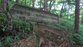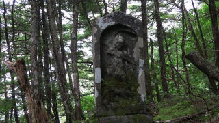 | ☆ ☆ ☆ ヘーヘーしながら、刀利天狗まで登ってきました。少し下って五合目小屋跡に到着 ☆ ☆ ☆ |