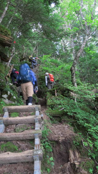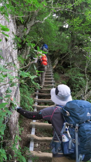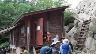 | ☆ ☆ ☆ 極めつけは垂直の梯子、槍ヶ岳よりも大変です。やっと、七丈小屋に到着しました ☆ ☆ ☆ |