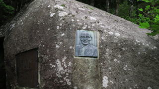 | ☆ ☆ ☆ 五合目小屋跡にはレリーフがあり小屋の創設者、古屋義成翁だと説明版に記されていました ん?白旗史郎さんが記されたのですね。ここからこんなに下るの?と降りていきます ☆ ☆ ☆ |