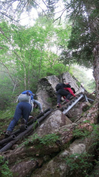 | ☆ ☆ ☆ 刃渡りを通過すると、梯子が現れてきました。これが段差のある登りなのできついのです しかも連続。まだあるの〜〜とへたばり始めました ☆ ☆ ☆ |