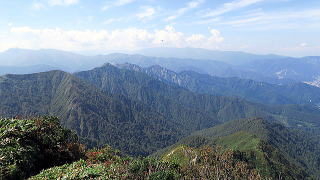| ☆ ☆ ☆ やっと頂上に到着。良かったとホッとすると共に、素晴らしい眺めだとしばらく見つめていました 七つ小屋山も直ぐそこなので、行きたいなんて思ったりして(^^ゞ ☆ ☆ ☆ |