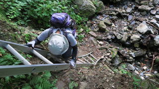 | ☆ ☆ ☆ 謙信ゆかりの道入口があったが、今回はピストンです ☆ アルミの梯子が不安定なのと、一か所折れているので、びくついて上ります ☆ ☆ ☆ |