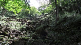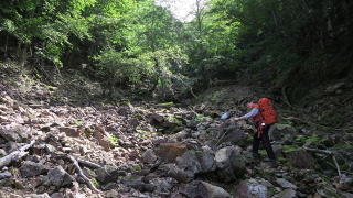 | ☆ ☆ ☆ 沢を登って行くと水が枯れてきました。その先を見つめると、更にゴロゴロ石が増えてきます ☆ ☆ ☆ |