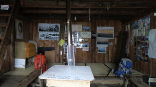 | ☆ ☆ ☆ さて小屋に入ってみます。本日は小屋に3名。テントが3名でした。 無人のため、土間の部屋のみ利用できます 毛布を2枚お借りし、マットを敷いてシュラフも用意してから乾杯しましょう ☆ ☆ ☆ |
