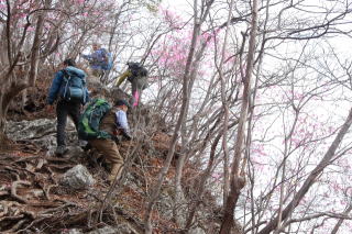 | ☆ ☆ ☆ 登り返しのマルはヘーヘーしちゃって。。。体力が落ちたのを実感! そこからの下りはアカヤシオのお出迎えがあったので足取りが軽くなりました。 ☆ ☆ ☆ |