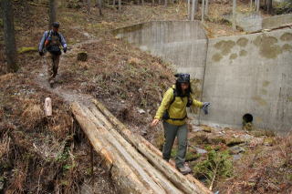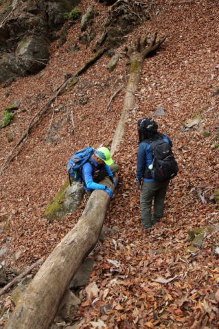 | ☆ ☆ ☆ 緊張しながら木橋を渡ります。登山口まで戻り、烏帽子はどうしましょうの話になりました。 皆さんが登られるのなら行きますが。。。。で決行です。 ☆ ☆ ☆ 烏帽子岳登山口11:30…烏帽子岳13:10-20…マル13:50…烏帽子岳登山口14:55 ☆ コースタイム 3時間 25分 ☆ ☆ ☆ ☆ |
