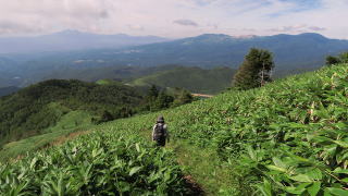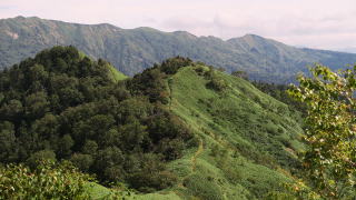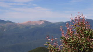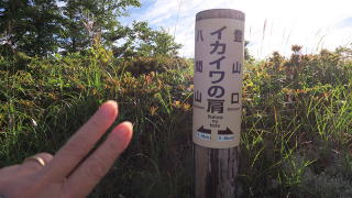| ☆ ☆ ☆ 振り返り草津白根山を眺め、手前の山も歩きやすそうと目で追ってみます イカ岩の肩は文字が薄いけど少し先にもありました ☆ ☆ ☆ |