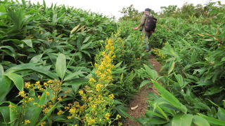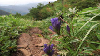 | ☆ ☆ ☆ 登山道は木段から始まります。腿上げをしっかりした後はお花がお出迎え ウメバチソウやマツムシソウ、ヤマハハコなど足が止まりますねぇ ☆ ☆ ☆ |