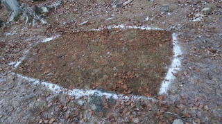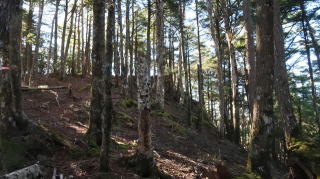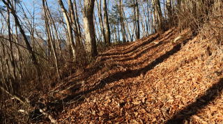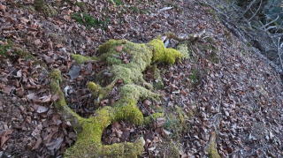 | ☆ ☆ ☆ 登山道には落ち葉、脇には苔、そして急坂なので空身で良かったと思いました。 山頂には三角点があったのでタッチしたが、眺めがなく地味な印象だったので直ぐ下山します。 ☆ ☆ ☆ |