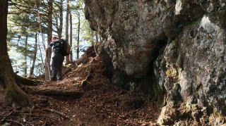 | ☆ ☆ ☆ 大きい岩が目の前に立ちはだかります。それは弁慶岩、なぜこの名? ☆ ☆ ☆ |