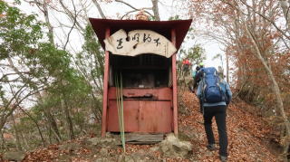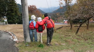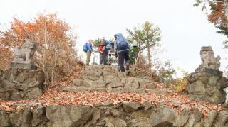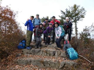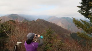 | ☆ ☆ ☆ 祠の後ろは良い眺めです。ただ曇り空なので両神山の頭は雲隠れでした。 参加の皆様と集合写真を撮ります。 ☆ ☆ ☆ |