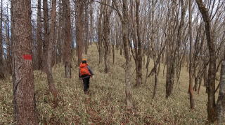 | ☆ ☆ ☆ 上御僧様から緩やかな上りになり、笹原を眺めながら気持ち良い道です。 ☆ 白髪山を下ると林道に出ます。ここからヤング仙人の登場です。 こちらから登るとついていく師匠、二人の足の速い事。あっという間に置いて行かれます(^^ゞ ☆ ☆ ☆ |