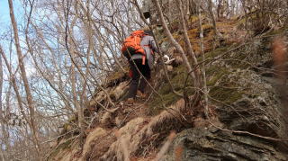 | ☆ ☆ ☆ ここでお昼にしますが超寒いです。おでんを温め冷え切った体をホットにし集合写真を撮ります。 ☆ 下山はピストンですが、少しの上りでもスピードダウンです。 体力が落ちたなぁと今回も実感してしまった(^^ゞ ☆ ☆ ☆ |