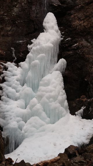 | ☆ ☆ ☆ 滝前にはソロ男性がいたので、シャッターを押していただきました。 ☆ 氷瀑を眺めながらホットコーヒーを飲みます。三人ともお湯は持ってきていたので シャッターを押していただいたお礼にとソロ男性にもコーヒーを差し入れしました。お茶菓子もね(^^ゞ ☆ お話をしながら氷瀑情報を聞かれ、山友さんは三十槌の氷柱や芦ヶ久保の氷柱を勧めていました 私としては、ヤッパ中止の滝や大滝の不動滝でした(^^ゞ ☆ ☆ ☆ |