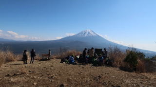 | ☆ ☆ ☆ 思い思いの場所でランチに♪日向は暑いので日陰で食べます。 富士山を眺めながら、山のお話は楽しいです。 ☆ ☆ ☆ |