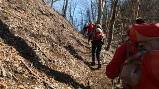 | ☆ ☆ ☆ グッと下ると登り返しが待っています。明るい道なのでお喋りも弾みます。 ☆ ☆ ☆ |