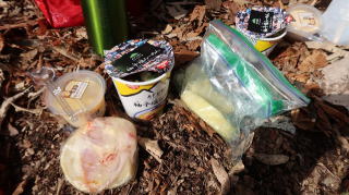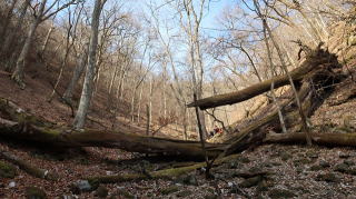 ![]() この道、下山はかなりこけました 目印の倒木 |