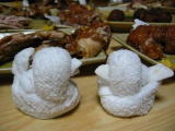 | 鳥新は鶏肉料理のお店です。座るとこの様なコースで出てきます。そして生ビールが美味しいのです。 このお店お勧めでっす(^^)v おしぼりでひよこの作り方を教えていただいたので作ってみました。。 |